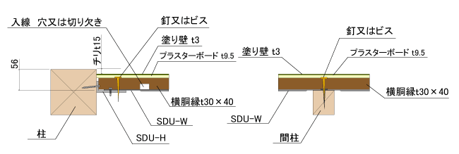 真壁塗り壁の仕上げの施工例です。これに限ったものではありませんので参考にしてください。
